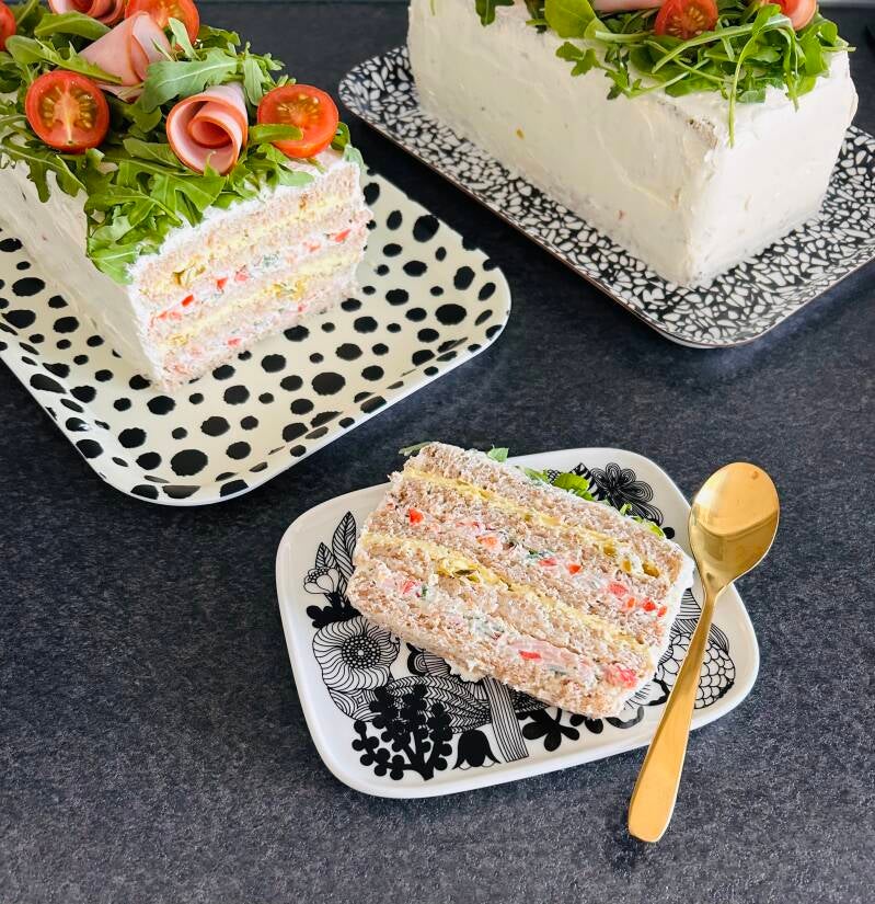 Kääri voileipäkakku tiukaksi paketiksi kelmuun ja anna kakun tekeytyä kylmässä kevyen painon alla yön yli.